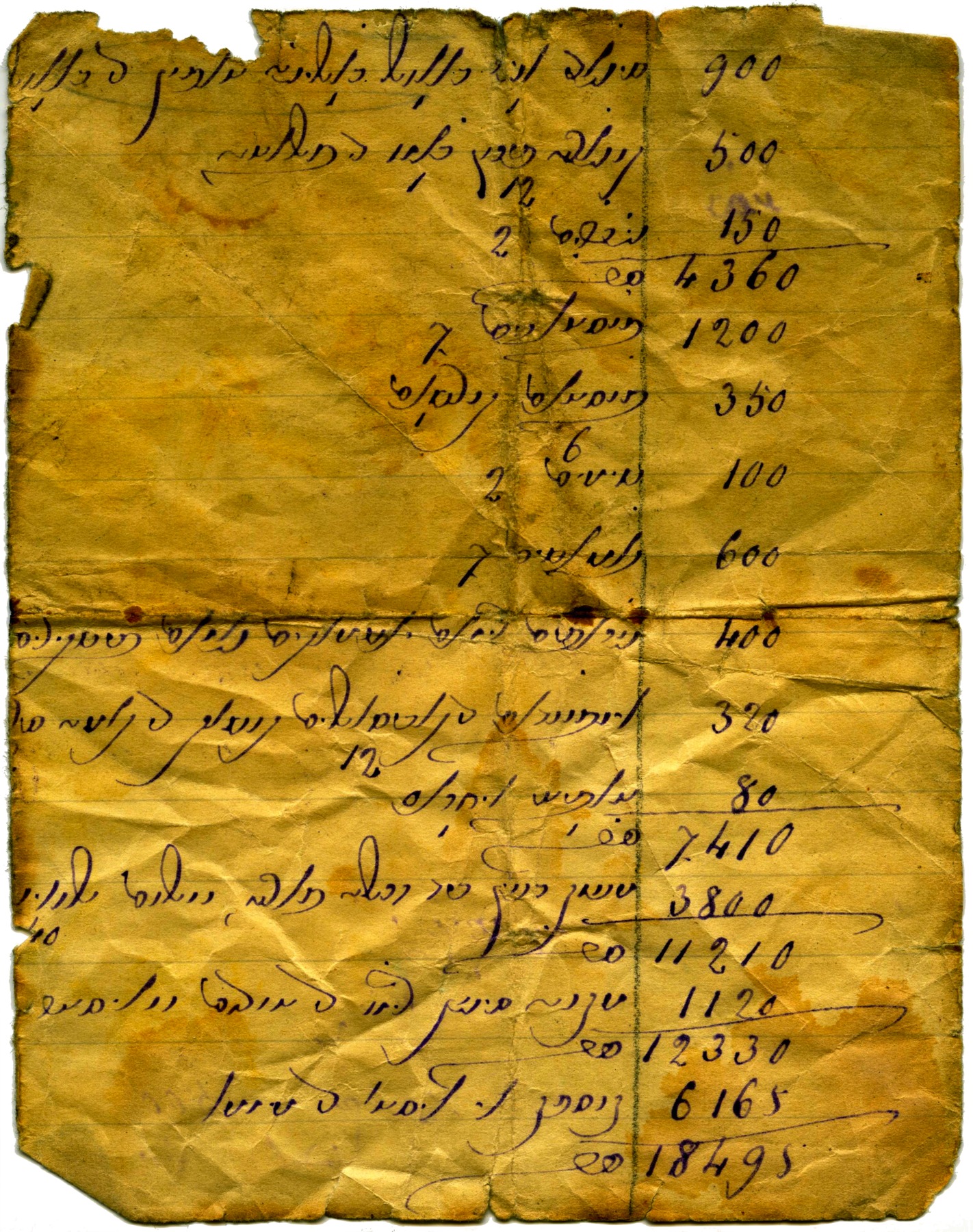 Fragment of a dowry assessment from the Jewish community of Rhodes, 1914. Courtesy of the Reverend Morris Scharhon Collection.